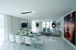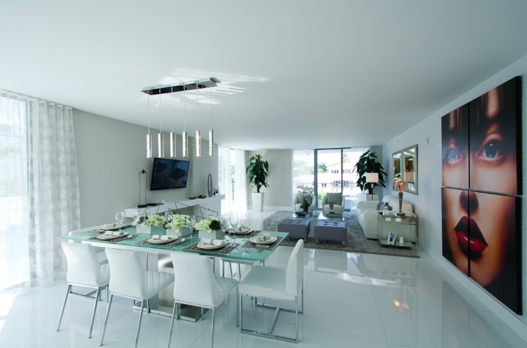 Amenities within Riva at Bay Harbor include a rooftop pool with an accompanying jacuzzi where you can lounge and enjoy the panoramic vistas, a modern fitness facility, concierge and private elevator foyers. Boat slips are also available. The Riva condos have 2,347 to 3,425 square feet of living area. The majority of residences are decorator ready although a few come furnished and decorated by designer Steven G.
