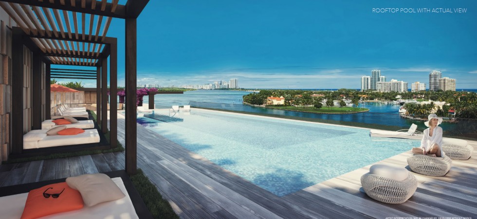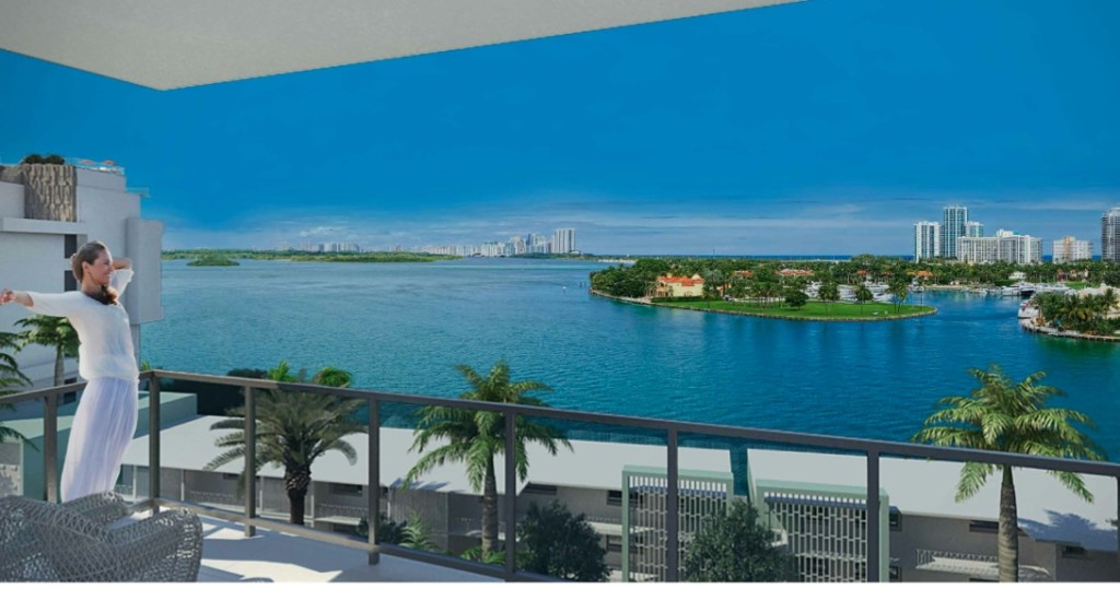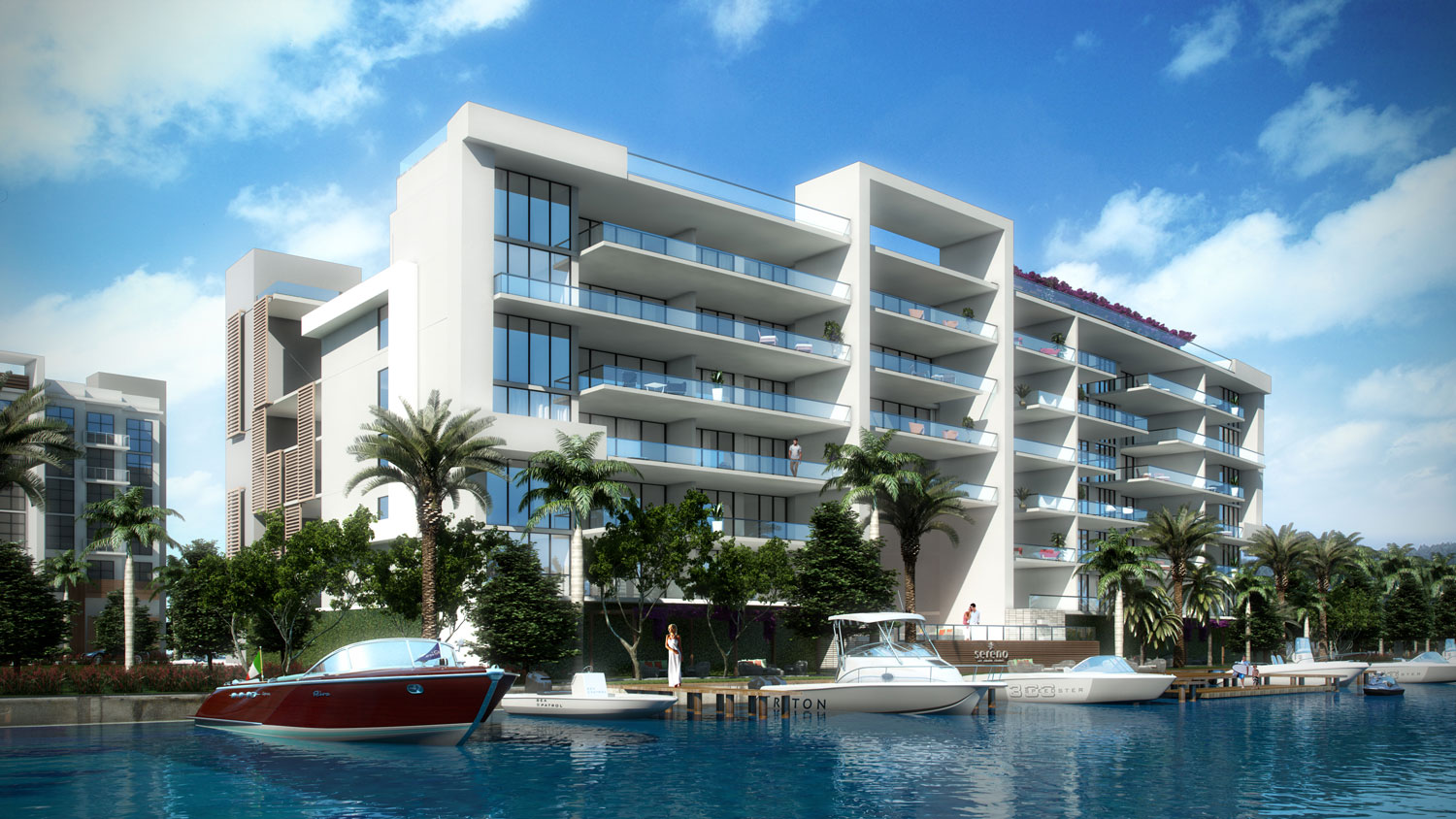 Sereno at Bay Harbor is a private island community within the town of Bay Harbor Islands Florida that fuses three different types of properties, villas being one example. The building is eight stories tall and has forty units available with 1,100 to 2,300 square feet of living area.
