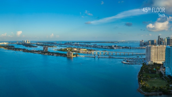 • Two 8 to10-Foot Terraces Facing East & West with Unobstructed Views of Biscayne Bay, Miami Beach and Downtown