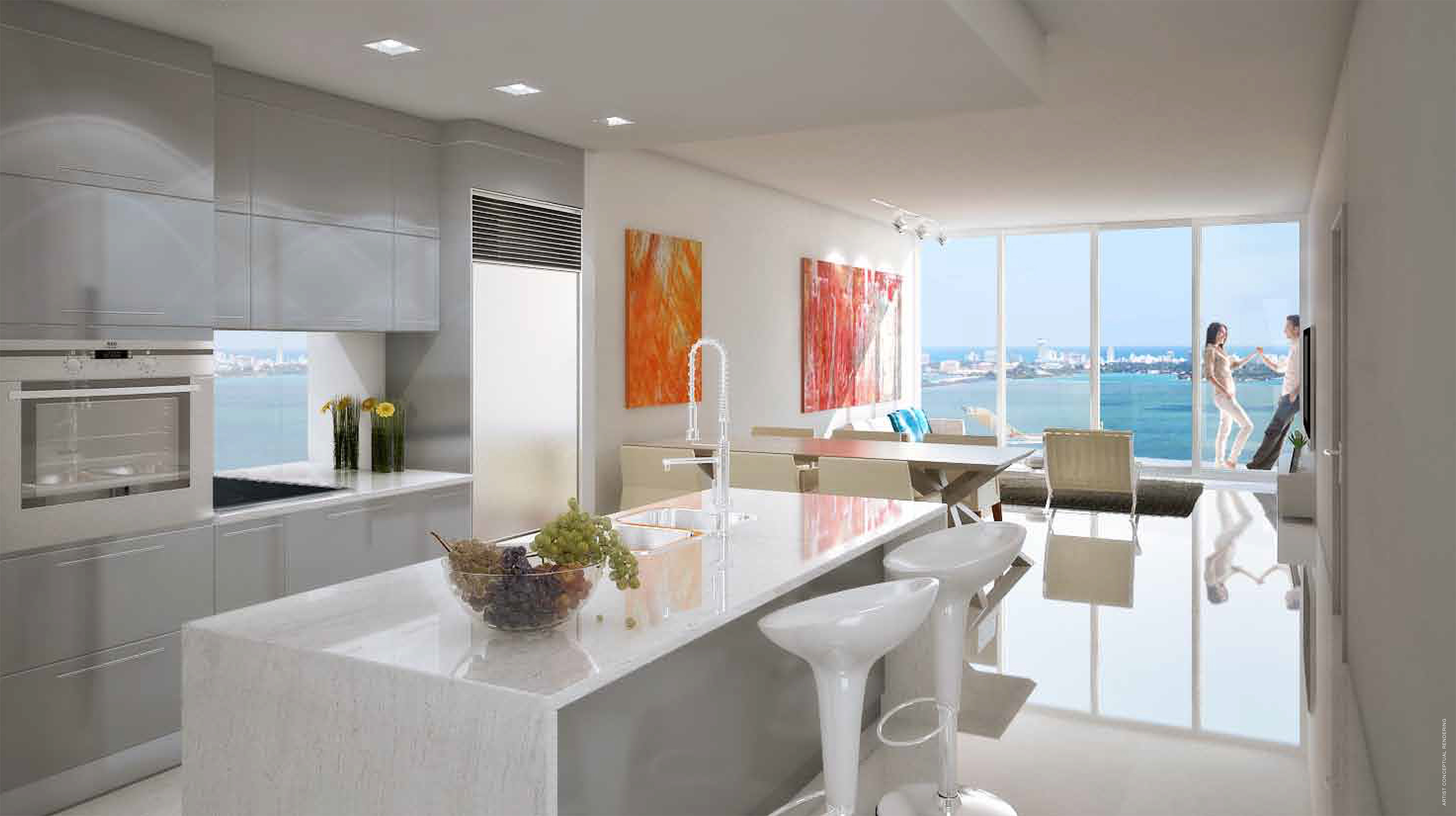 The forty story Icon Bay is a private and exclusive condominium located east of Biscayne Boulevard overlooking the similarly named Biscayne Bay, a project by the renowned firm of Arquitectonica and the Related Group. It's comprised of one, two and three bedroom Miami condos for sale that all boast nine foot ceilings and floor to ceiling windows, ensuring that each day you wake up you'll be greeted with the spectacular South Florida sunshine sparkling off of the brilliantly blue waterfront.