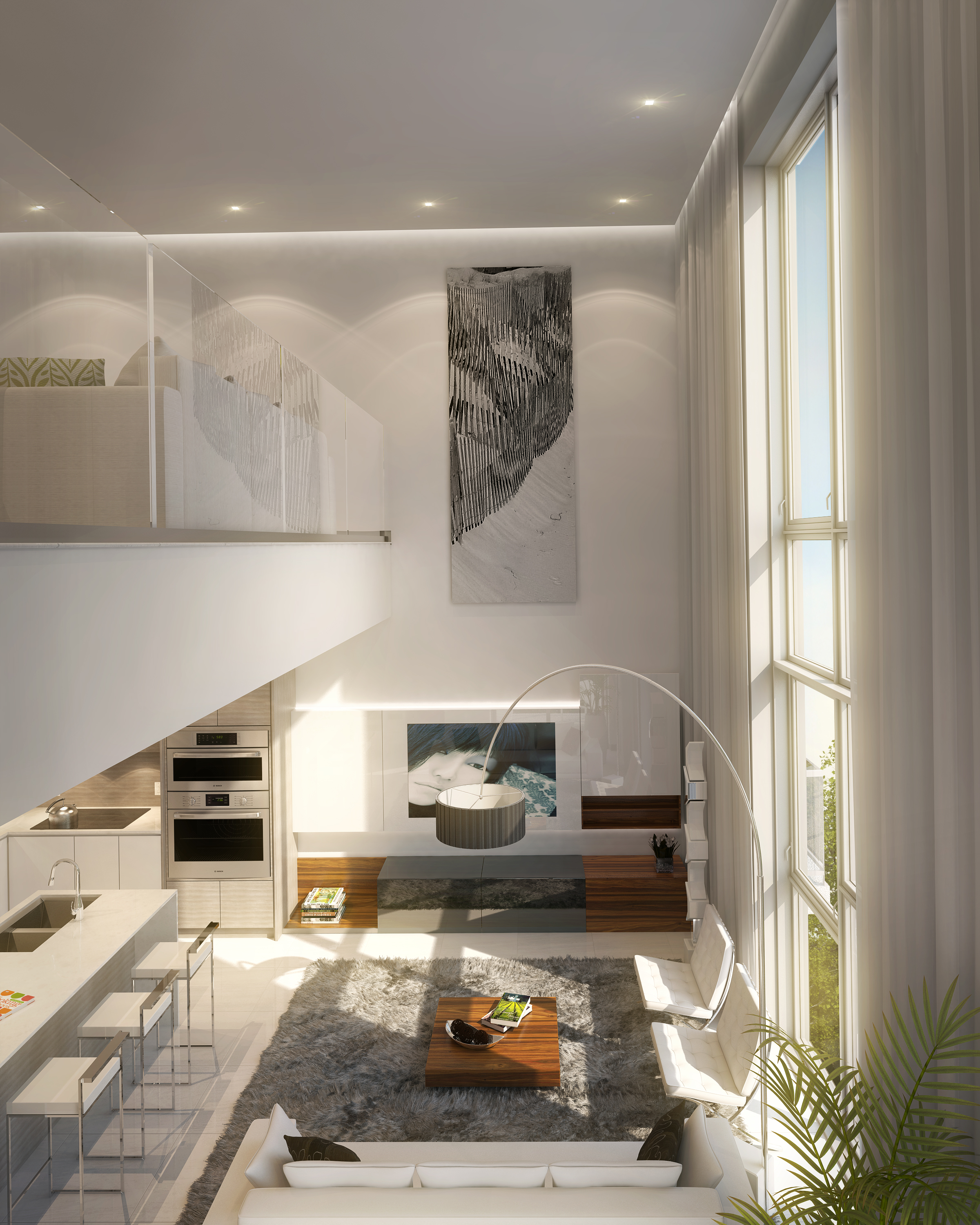 interiors designed by IDEA Interior Designers bringing to its townhome residences a contemporary look and feel. Units include floor-to-ceilings windows, stainless steel kitchen appliances, custom Italian kitchen cabinets, and in-unit washer and dryer.