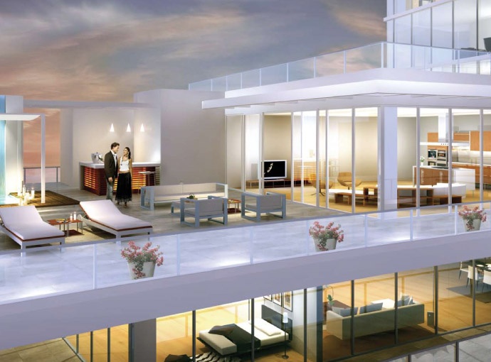 Once you've stepped past the magnificent three story lobby of Paramount Bay you'll be surrounded by a number of great amenities that include a two story fitness facility, the members only Paramount Club, a forty seat movie theater, heated swimming pool and much more. The units of Paramount Bay have one, two, three, four or even five bedrooms available with 1,245 to 4,567 square feet. The impressive square footage ensures that even the smaller units still have ample space for customization and extra comfort. Eight foot deep terraces only hint at the many modern features found within these residences.