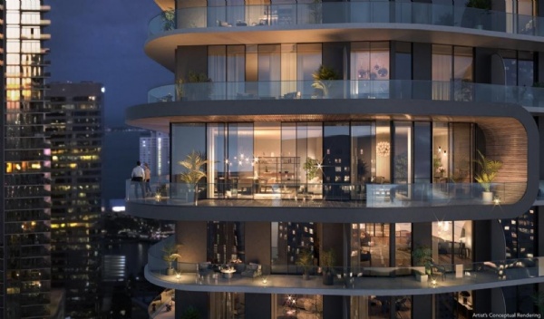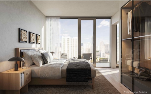 The famous firm Arquitectonica designed the tower in an amazing minimalist post modern aesthetic. Lofty Residences Brickell has dramatic views of the Miami River and the Miami and Brickell skyline. Arquitectonica is the mastermind behind Reach and Rise at Brickell City Centre, and Icon Bay and many more spectacular buildings in the area.