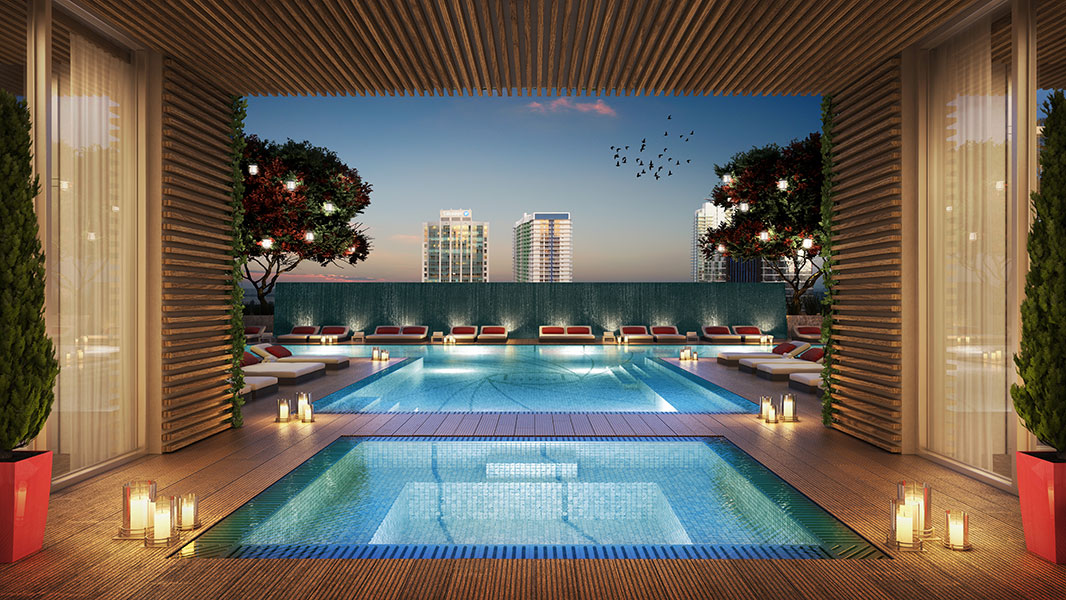 The Bond was inspired by classic British elegance and understatement, while having luxury amenities and residence features, requisite of elite Miami real estate. This exclusive development has 5,000 square feet of retail space on the second floor and will also have 595 parking spaces. Details on interior finishes will soon be released, however in the tradition of luxury of other residences in this area there will likely be floor to ceiling windows and stunning views. The building amenities were inspired by the elegance and mystery of James Bond movies and include an outdoor fire pit, cabanas with private livings rooms and outdoor kitchens, canopied jacuzzi with resort style pool, state of the art fitness center and spa, kids area, club room with billiards, and a private owner’s lounge with daily refreshments.