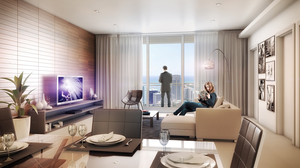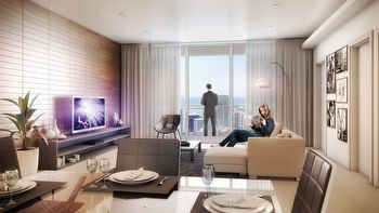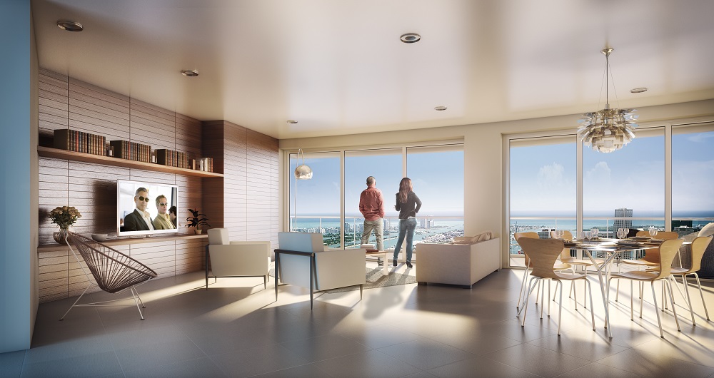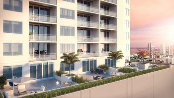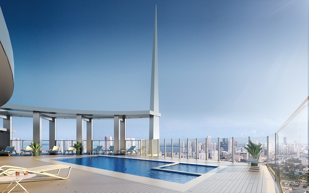 If you head up to the Krystal Tower rooftop you'll find a pool deck that includes an accompanying Jacuzzi and on the 34th floor is a sky lounge. Also look for a yoga studio, a fire pit, a cutting edge gym, cinema and many more features. The Miami condos for sale of Krystal Tower have 846 to 1,640 square feet of living area with one or two bedrooms. Floor to ceiling windows, porcelain tile flooring and stainless steel appliances are some of the residential features.