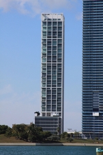 The fifty story Ten Museum Park condo in Downtown Miami by architect Chad Oppenheim is located on Biscayne Boulevard and overlooks Bicentennial Park, Biscayne Bay and the Miami cityscape, It's actually one of the most easily noticeable buildings thanks to its crystalline structure. The building has one, two, three, four and five bedroom Miami condos for sale.