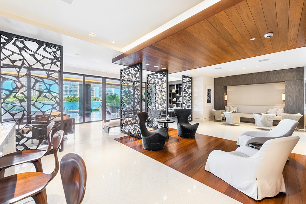 • North lobby terrace lounge with indoor/outdoor seating overlooking South Beach