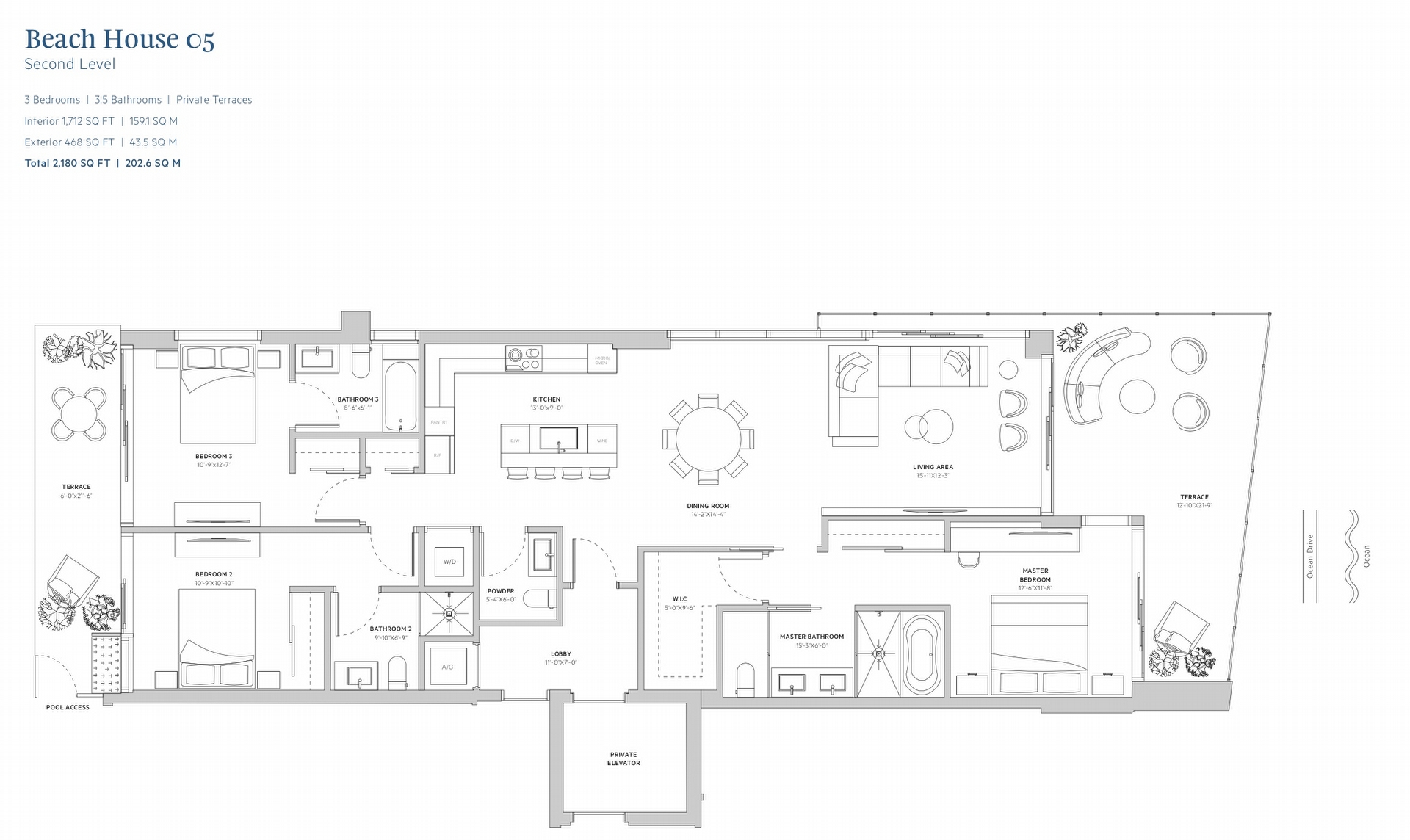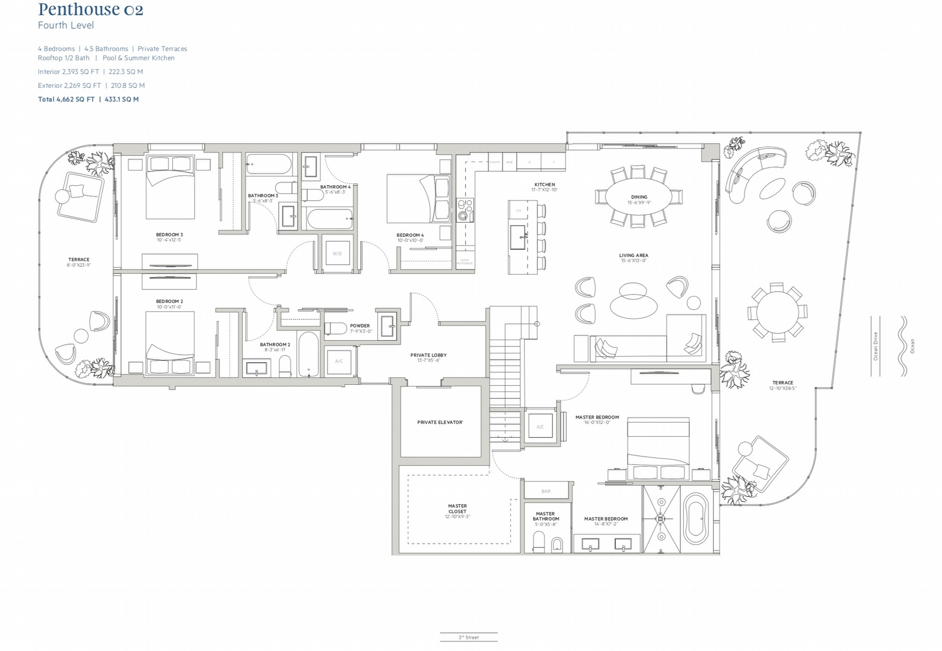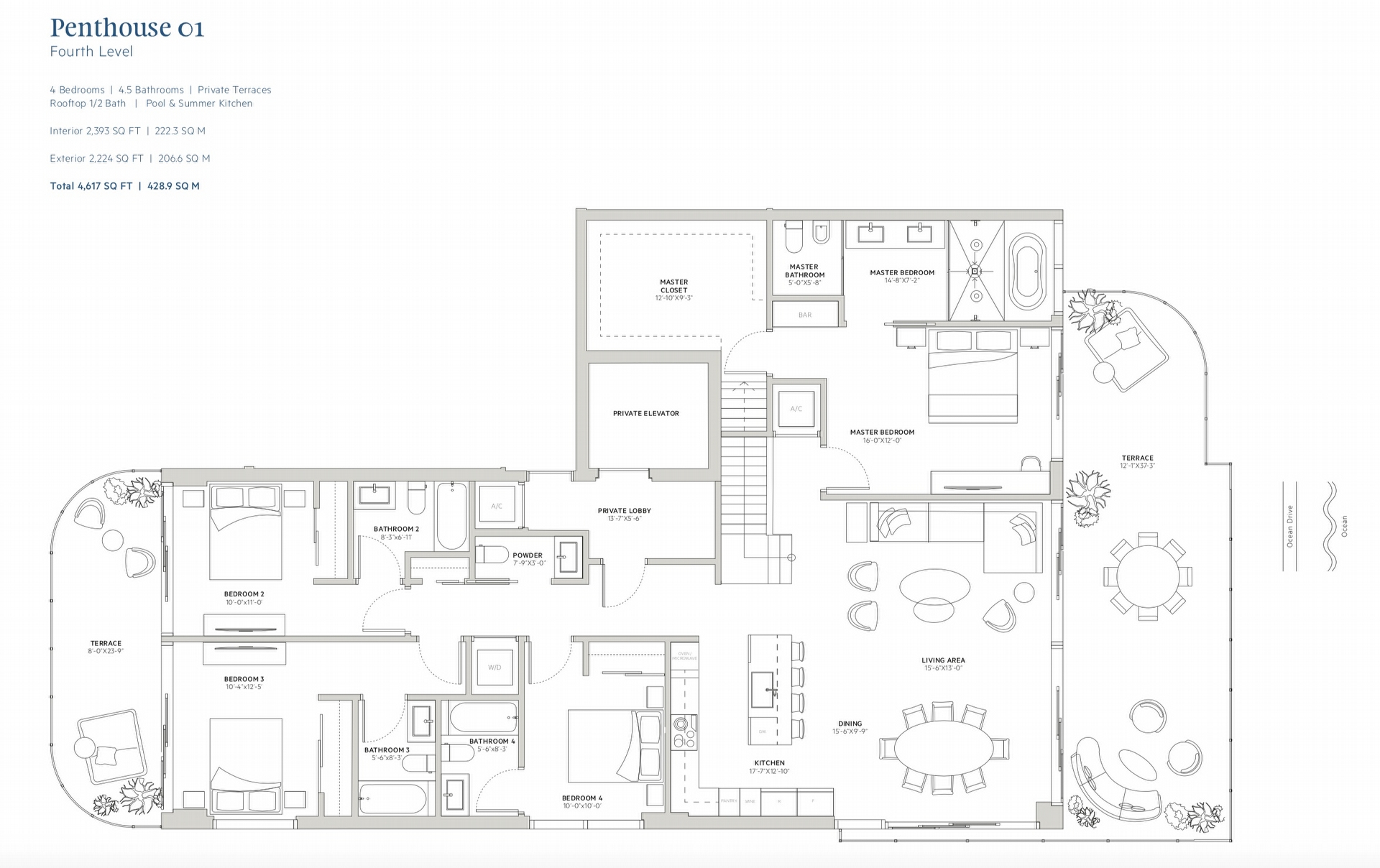• Four bedroom residences with 2,393 square feet and 2,224 - 2,269 square feet of expansive terraces
