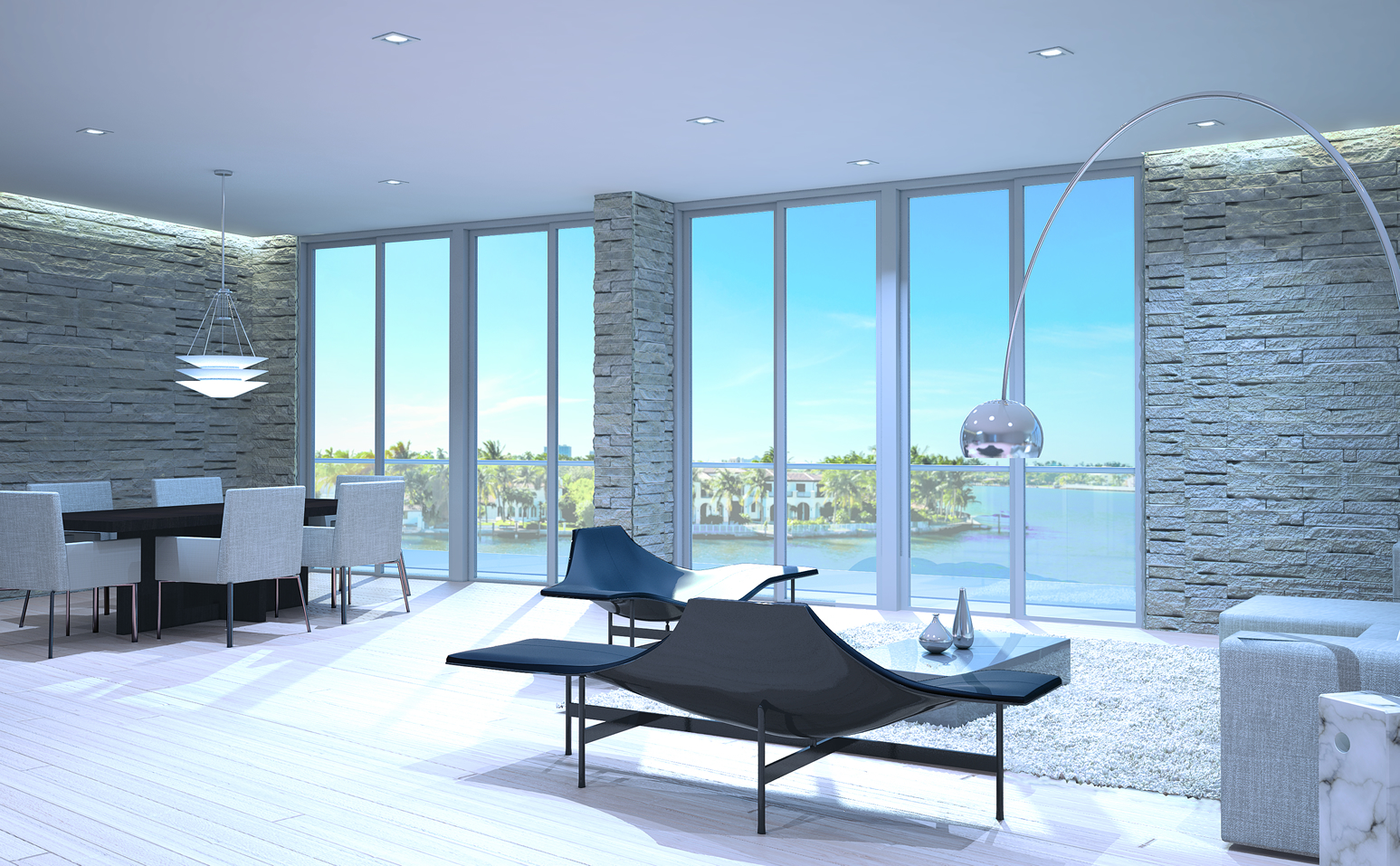 • Expansive floor-to-ceiling hurricane proof windows