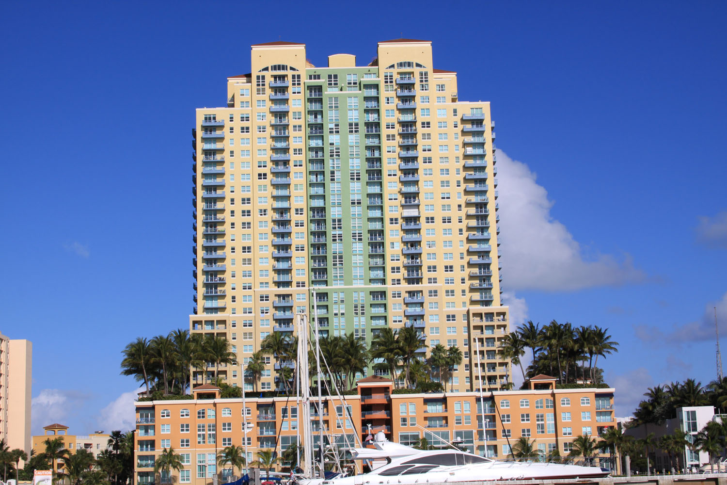 The 33 story Yacht Club at Portofino condo is a project by the firm of Cohen, Friedman, Encinosa located in Miami Beach's “South of Fifth” area. This area is part of South Beach and is generally considered to be where you'll find several high end buildings. Because of its location near the southernmost point of the city, residents of this building enjoy views of Biscayne Bay, Dodge Island and the private neighborhood of Fisher Island. Yacht Club at Portofino has one and two bedroom Miami Beach condos for sale.