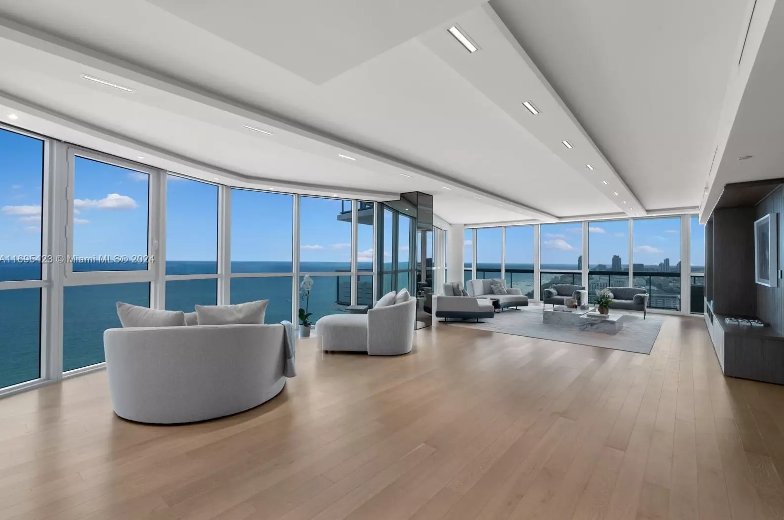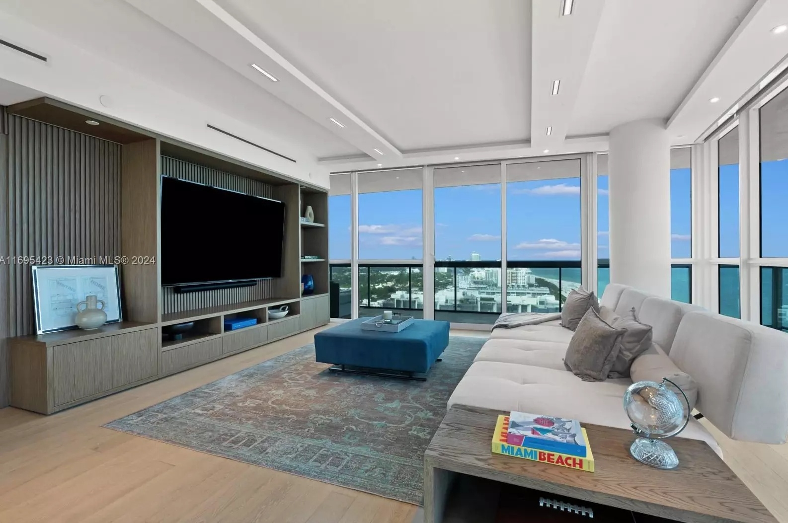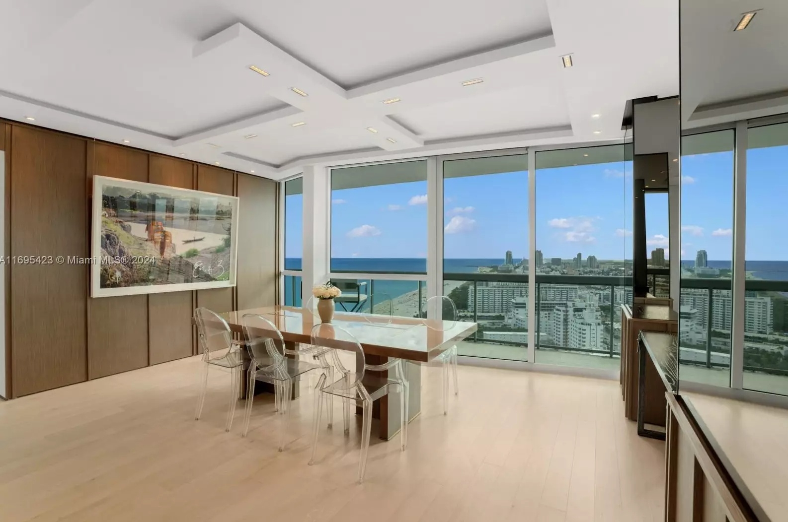 Step Inside With Me! This iconic Setai Skyhome unveils to a 63' oceanfront main salon with stunning sitting room and TV lounges. Spanning over 6,000 SF, this 4-unit combination floorplan represents the 2nd largest residence in the building where every social area & bedroom offers endless views. The custom reconfiguration includes white oak floors, sleek modern kitchen, tray ceilings, wood paneled millwork, Lutron automation, and marble baths with heated floors. Entertain in style at 2 bar settings and a world class oceanfront 3-row theater. Epic downtown skyline vistas and sunsets are afforded to the dining & family rooms as well as glass encased study/5th sleeping quarter. In the heart of Billionaires Beach, the 5 star Setai offers 3 restaurants, known spa & beach for celebrity sightings.