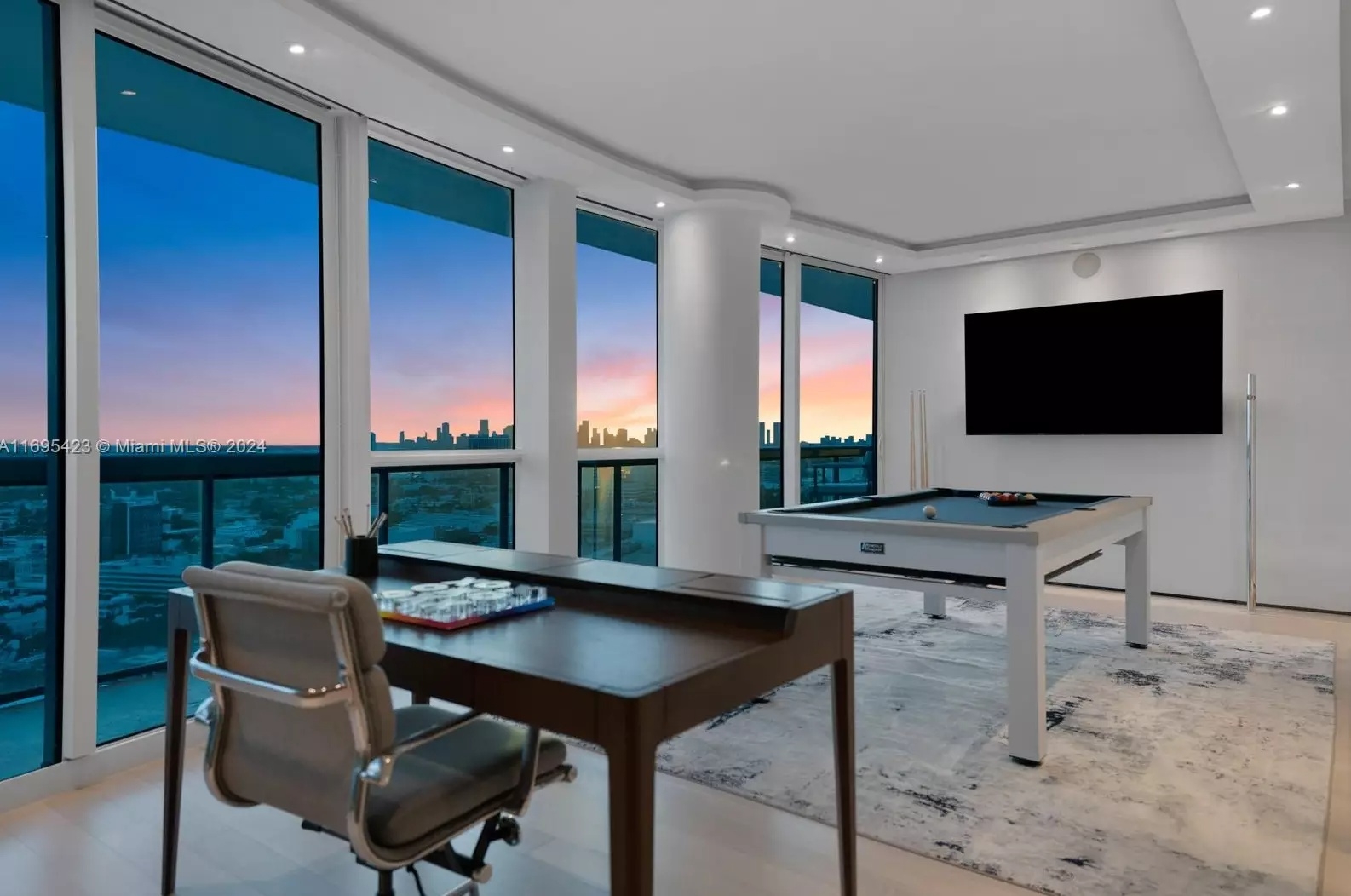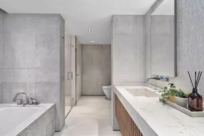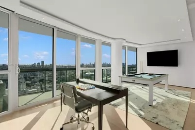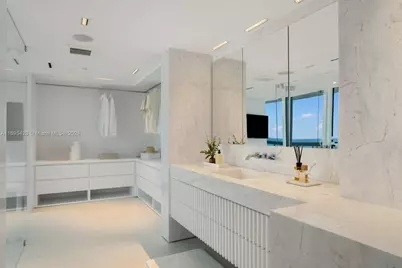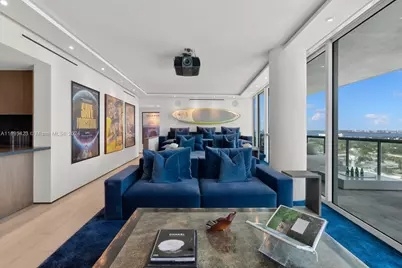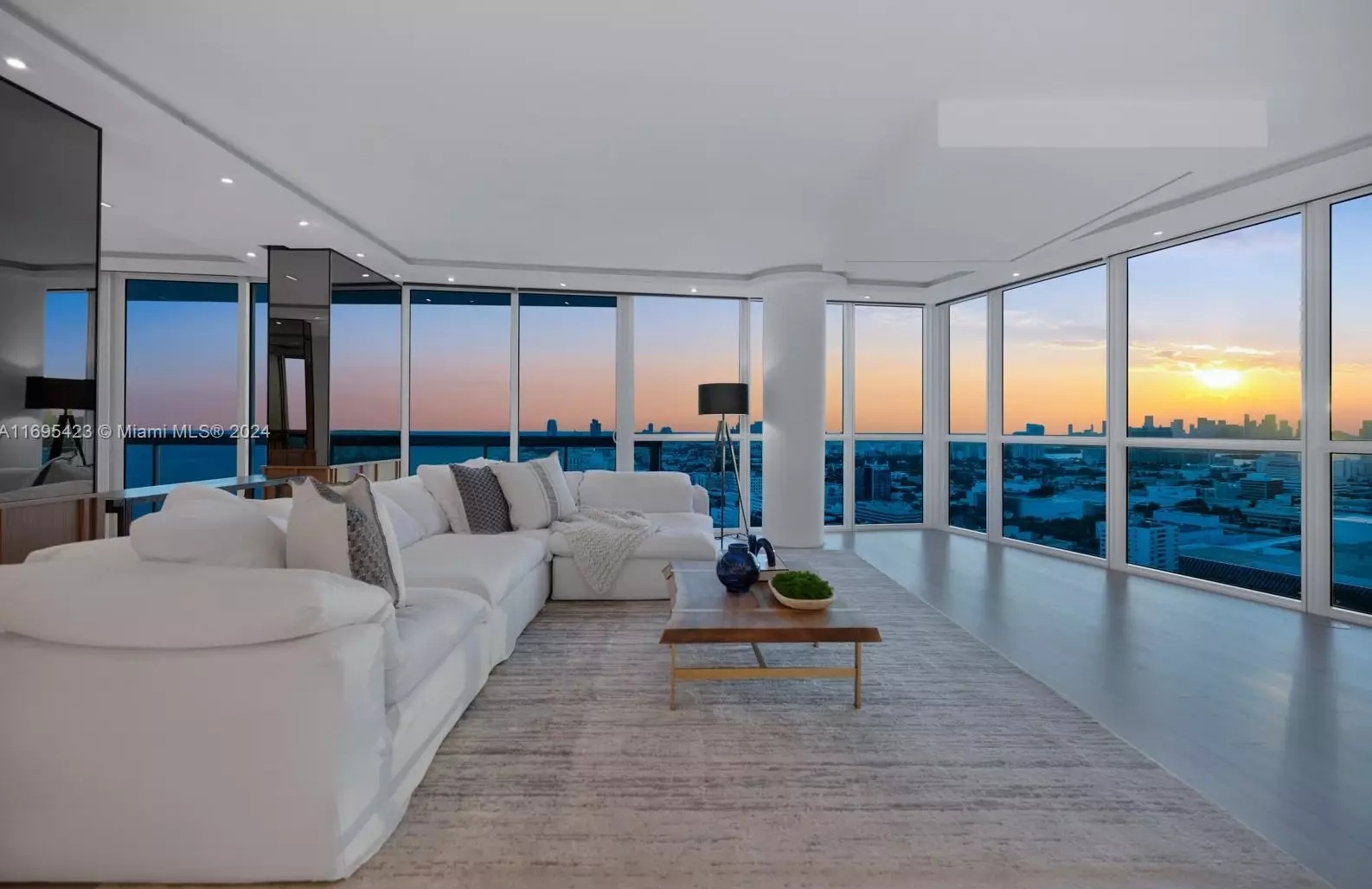 Step Inside With Me! This iconic Setai Skyhome unveils to a 63' oceanfront main salon with stunning sitting room and TV lounges. Spanning over 6,000 SF, this 4-unit combination floorplan represents the 2nd largest residence in the building where every social area & bedroom offers endless views. The custom reconfiguration includes white oak floors, sleek modern kitchen, tray ceilings, wood paneled millwork, Lutron automation, and marble baths with heated floors. Entertain in style at 2 bar settings and a world class oceanfront 3-row theater. Epic downtown skyline vistas and sunsets are afforded to the dining & family rooms as well as glass encased study/5th sleeping quarter. In the heart of Billionaires Beach, the 5 star Setai offers 3 restaurants, known spa & beach for celebrity sightings.